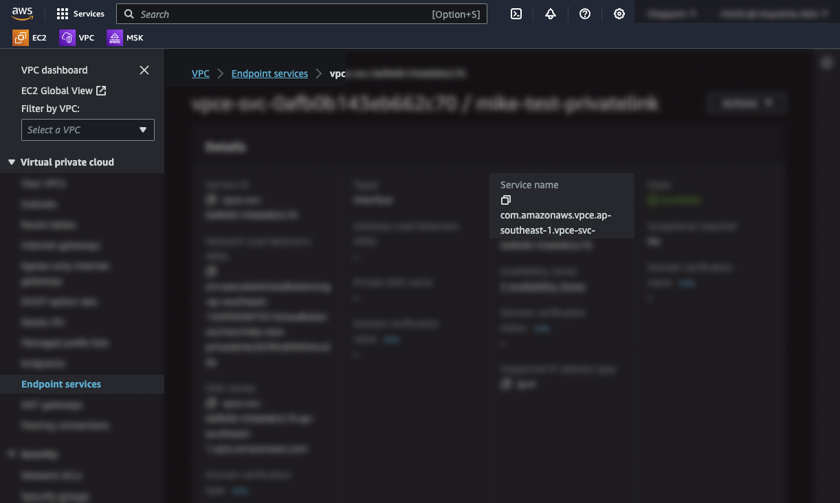If you choose AWS as the platform, enter the service name of the endpoint service.