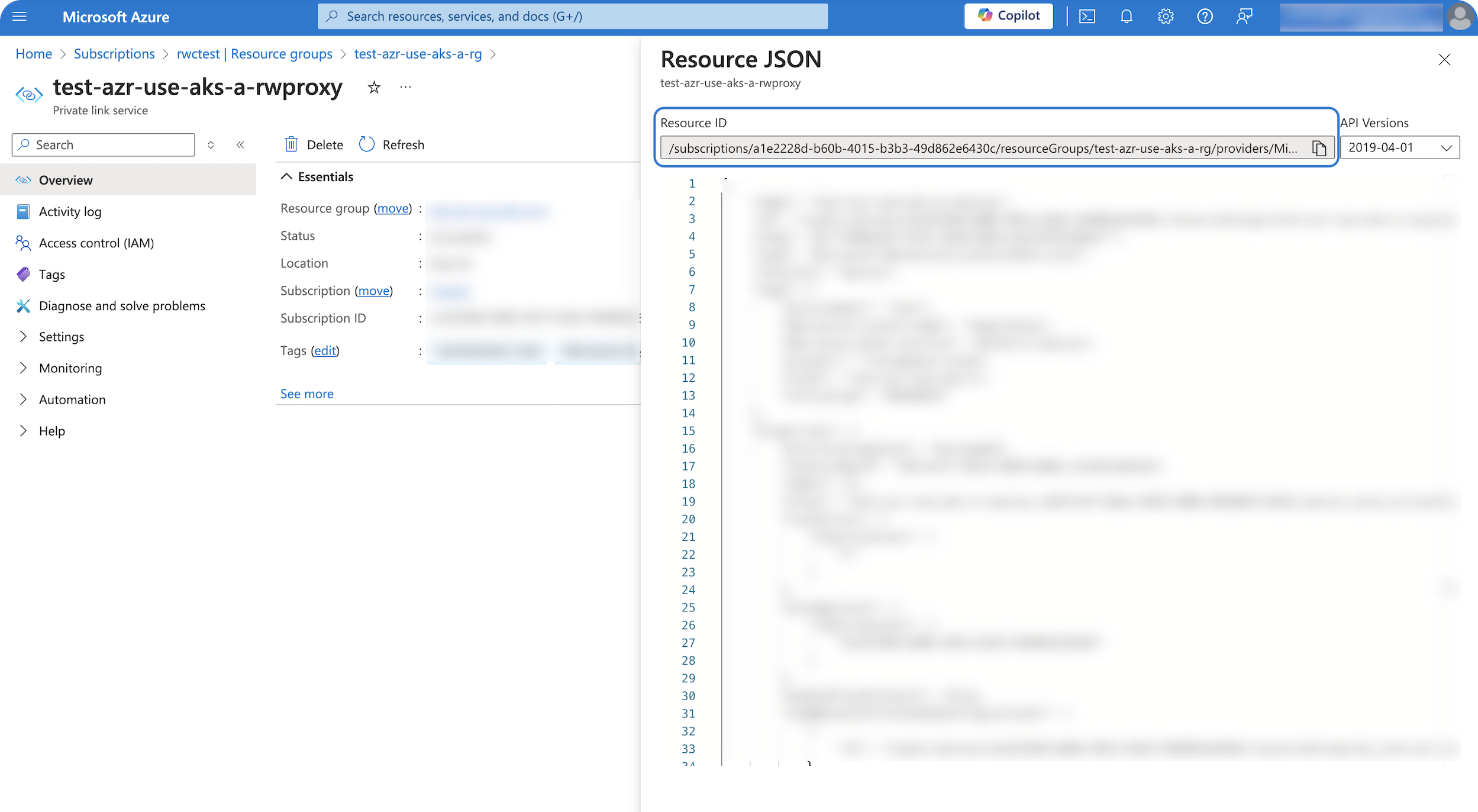 If you choose Azure as the platform, enter the Private link service resource ID.